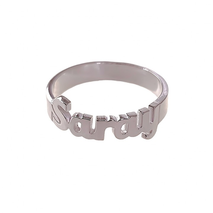 Sortija plata de ley 925 nombre personalizado . Fabricación láser