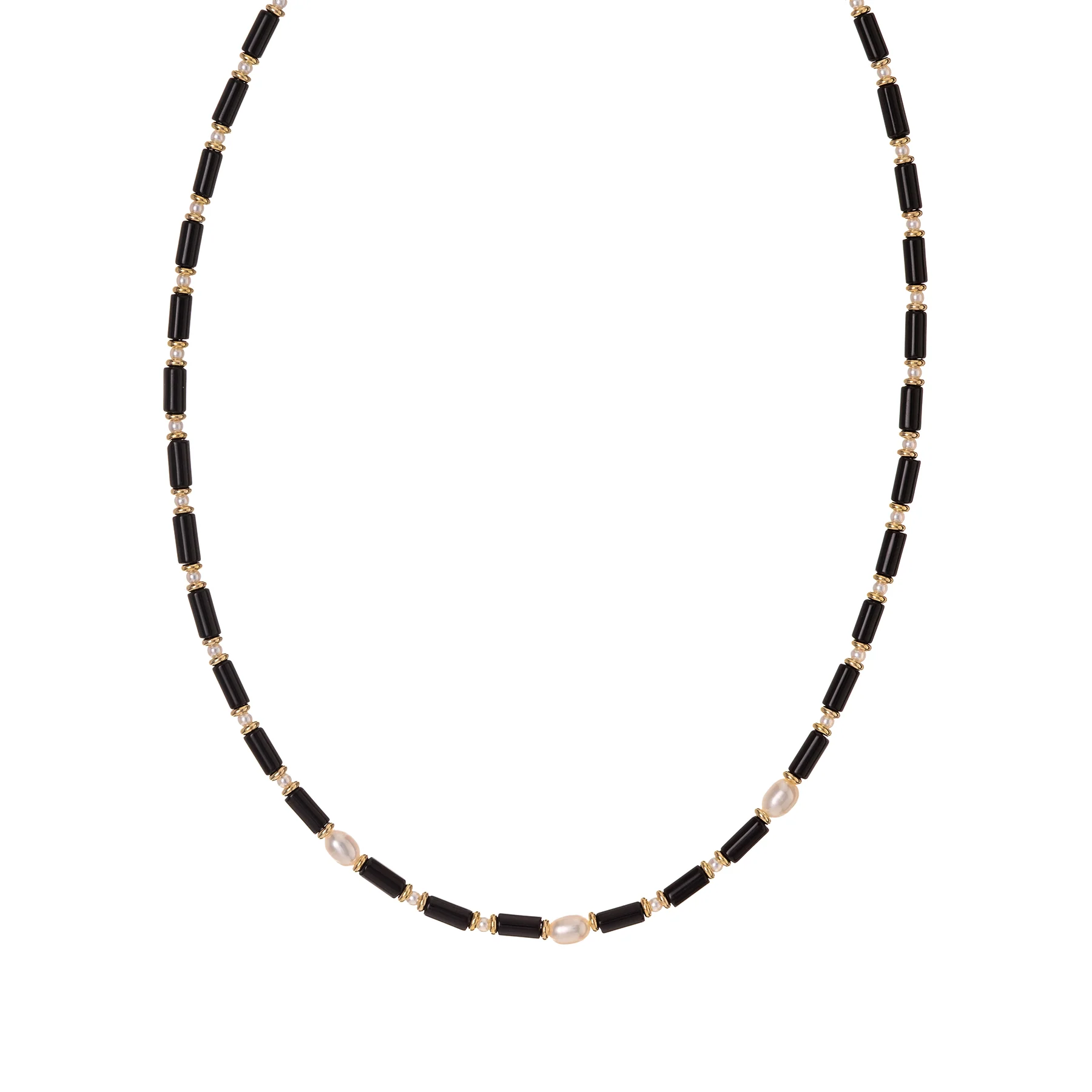 Collar Alisia plata de ley bañado oro piedras alargadas y perlas naturales