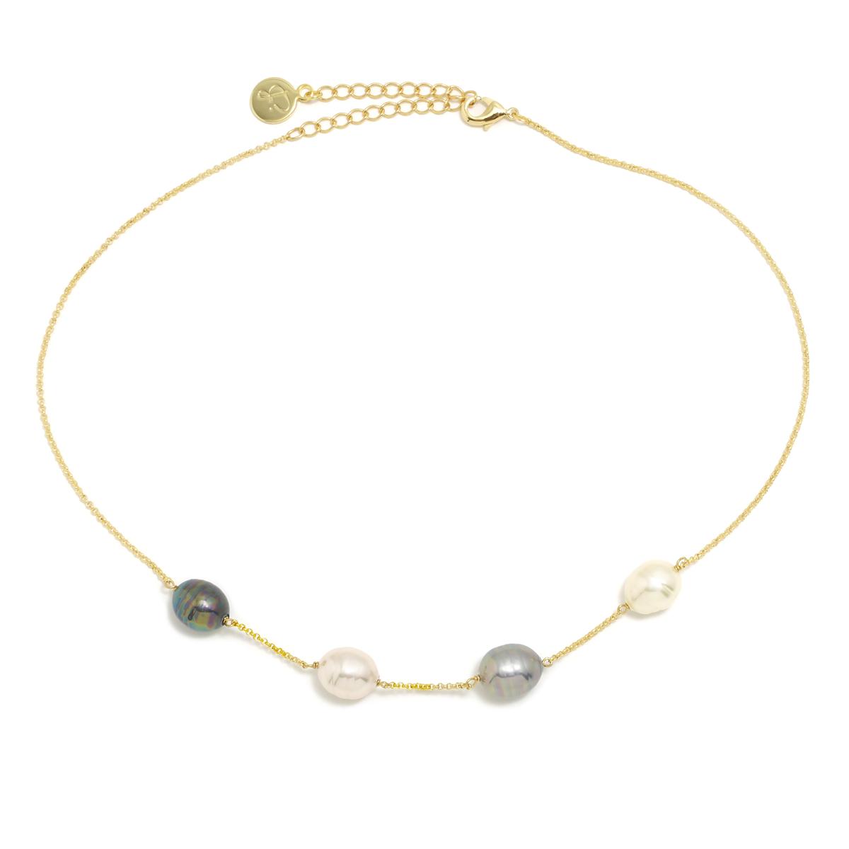 Collar de perlas de Mallorca con cierre de mosquetón y cadena de extensión. Baño oro.