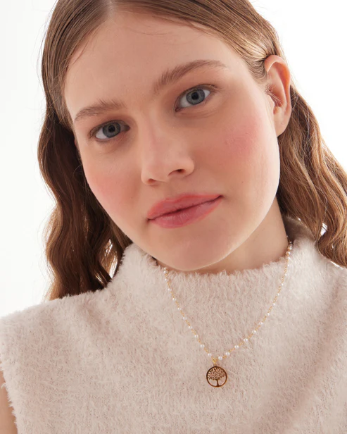 Collar corto árbol de la vida Sera con perla en Plata baño Oro