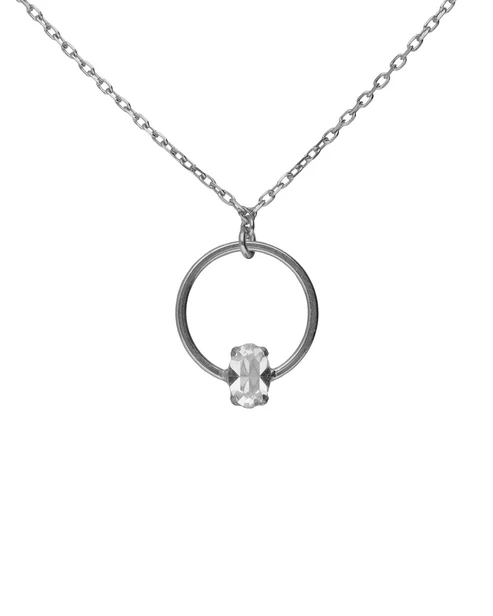 Collar corto con cristal blanco de Plata de Ley. Tamaño del motivo de 1,6cm x 1,4cm en forma de oval y círculo. Tamaño del cristal 0,6cm x 0,4cm. Largo de 40-45cm con cierre reasa y cadena diamantada de la colección Lieve