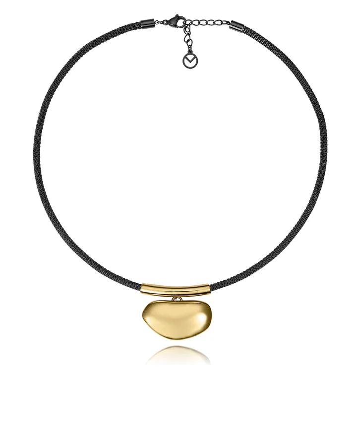 Collar colección Laura Escanes realizados en acero y baño de oro con piedras naturales, madre perla y ágata verde. Desmontable