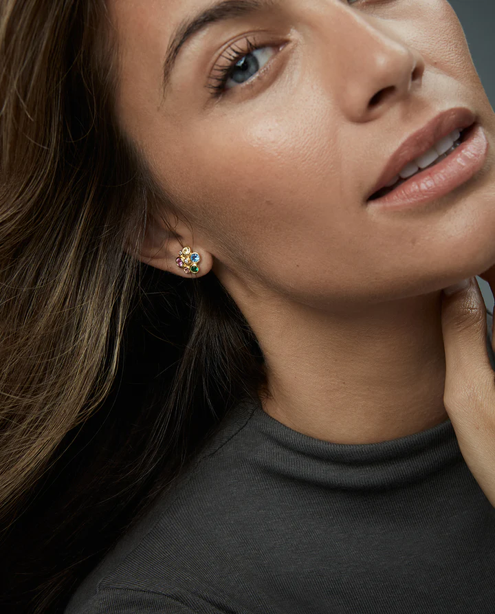 Unos pendientes pequeños en tamaño pero grandes en carácter. Elaborados en plata de primera ley con un delicado baño de oro, se embellecen con circonitas de colores que iluminan la pieza con un brillo vibrante y alegre. Su diseño aporta frescura y dinamismo, mientras que el dorado añade un toque de calidez y sofisticación atemporal. Con un largo de 1,2 cm, son ideales para llevar a diario o para aportar un destello de color en ocasiones especiales. Una joya versátil y moderna, perfecta para mujeres que desean expresar su estilo con elegancia y una chispa de vitalidad.